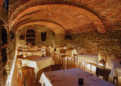 Il nostro ristorante si trova in una caratteristica “crota”, termine dialettale piemontese che indica un’antica cantina sotterranea. Questo spazio unico è stato sapientemente restaurato per preservare il suo carattere storico, creando un ambiente che fonde autenticità e raffinatezza. Le pareti in mattoni e pietre di fiume, testimoni silenziose di secoli di storia, sono esaltate da un’illuminazione calda e soffusa che crea un’atmosfera intima e avvolgente.